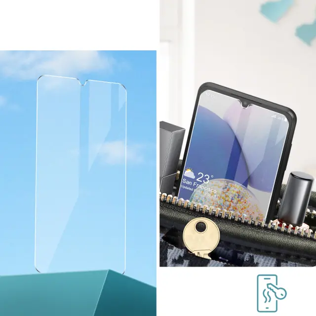 Prozorna zaščita zaslona, narejena po meri za Samsung Galaxy A14 5G. Učinkovita zaščita pred vsakodnevnimi udarci in praskami. Popolna preglednost, ki ščiti kakovost zaslona. Izjemno tanka zaščita postane eno z vašim telefonom.
