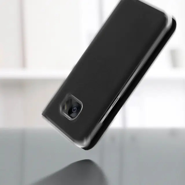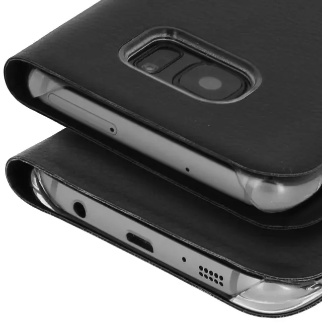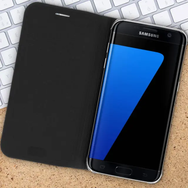 Torbica denarnica posebej zasnovana za Samsung Galaxy S7 Edge. Izjemno tanek etui, idealen za v žep. Eleganten dizajn, učinek Black Grain. Reža, vgrajena v pokrov, za vstavljanje kartice.