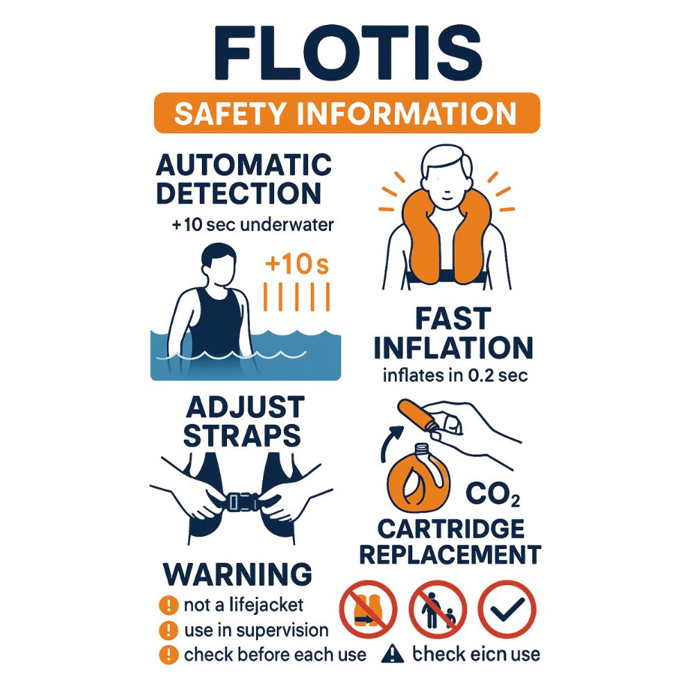 Flotis - Rešilni jopič proti utopitvi | Varnost za otroke, športnike, starejše | Samodejno napihovanje | Ohranjanje glave zunaj vode | Chutex