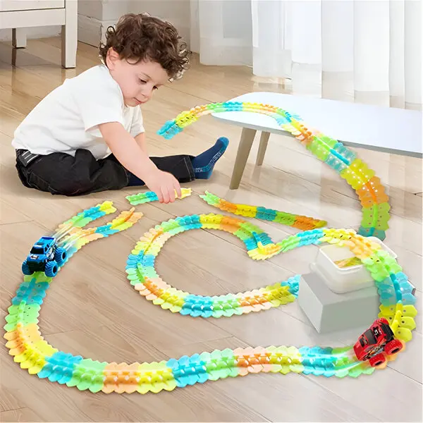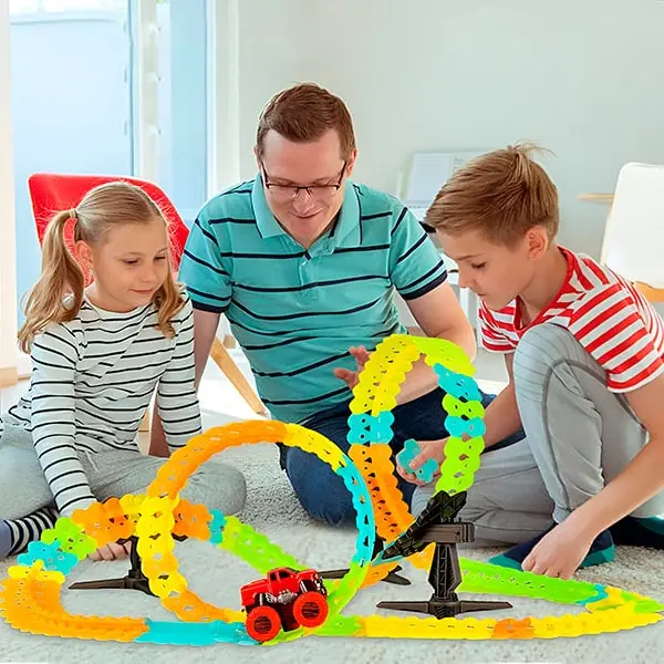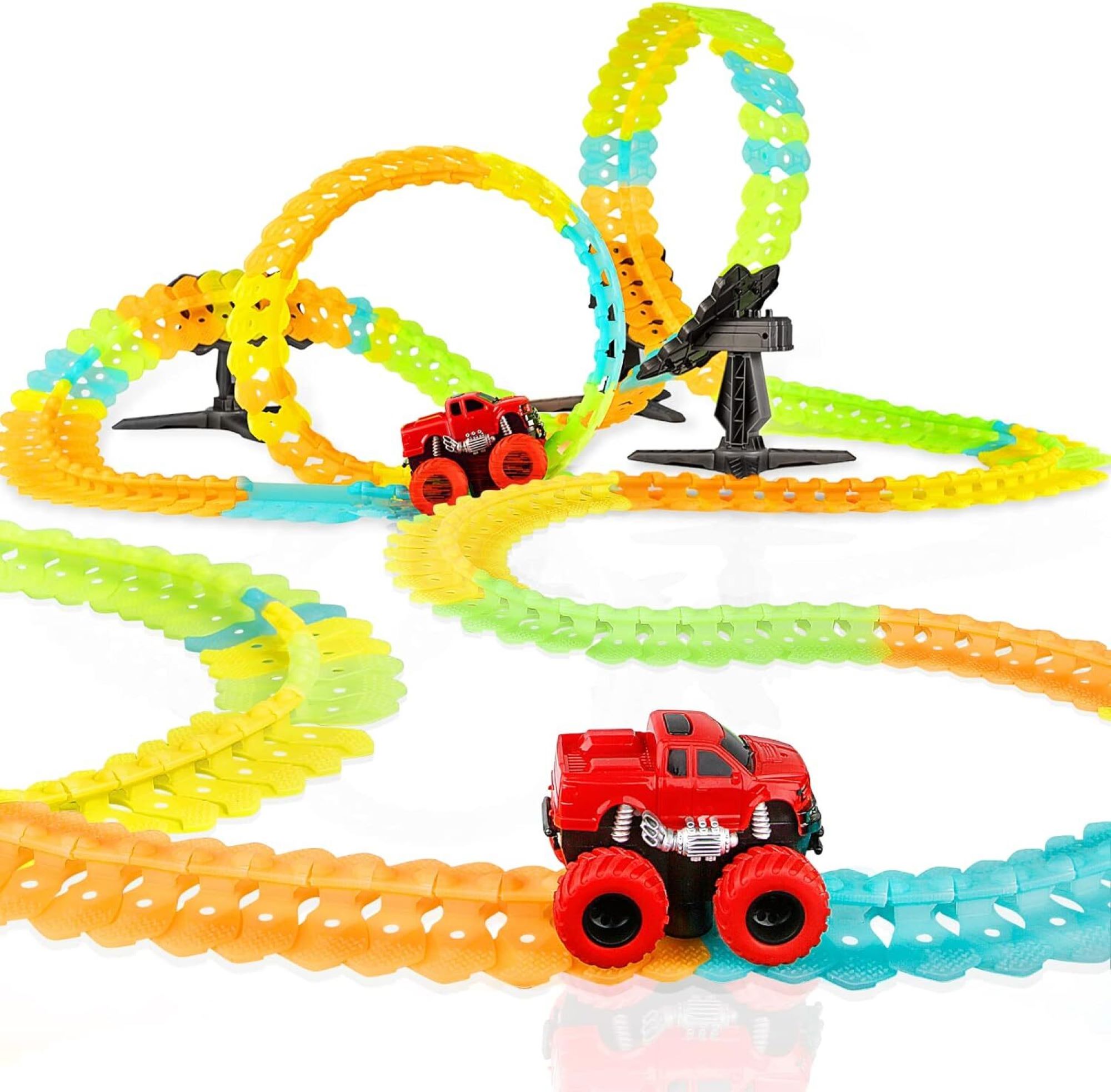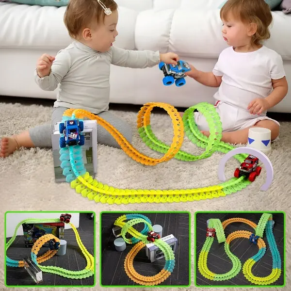 Sestavite prilagojeno, živahno progo poljubne dolžine s 360-stopinjskimi zankami, ravnimi ali ukrivljenimi odseki, navpičnimi ali vodoravnimi ureditvami in neštetimi drugimi možnostmi!