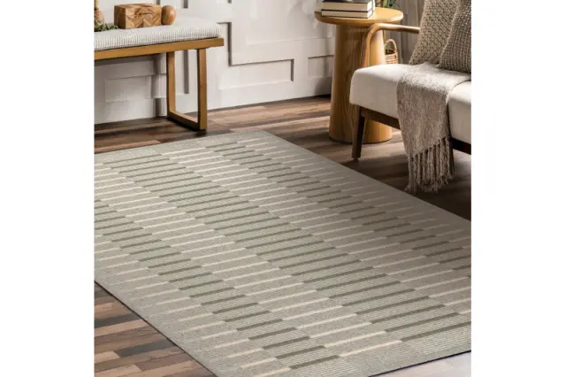 FLUX 461.124.SA400 volnena preproga OSTA - geometrijska, strukturna, loft siva / zelena 160x230 cm