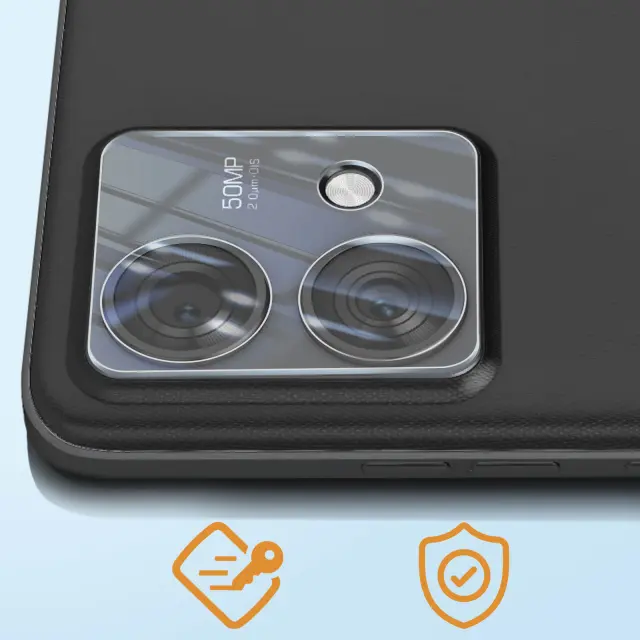 Folija za kamero Motorola Edge 40 Neo za zašcito kamer pred vsakodnevnimi napadi. Zašcita kamere Motorola iz kaljenega stekla, odpornega na udarce in praske. Steklo kamere Motorola Edge 40 Neo ohranja svetlost in ostrino fotografij.