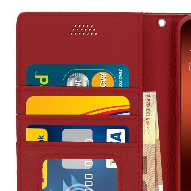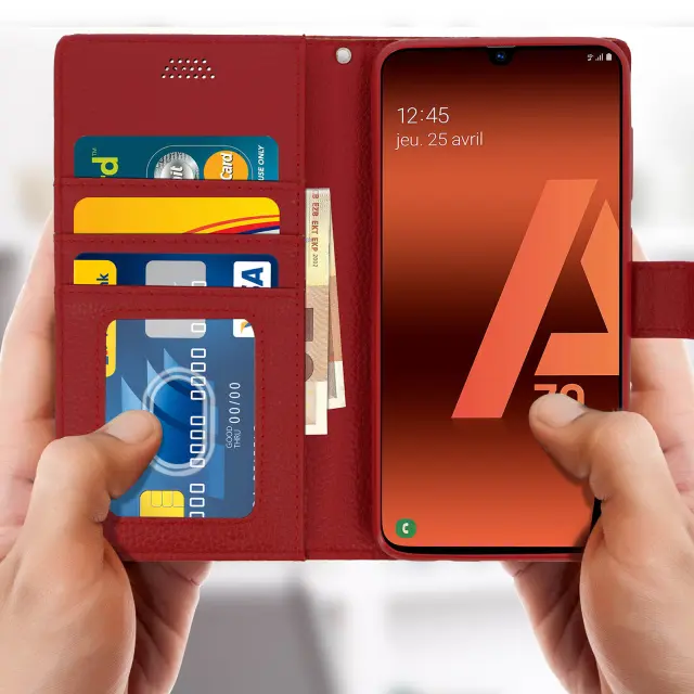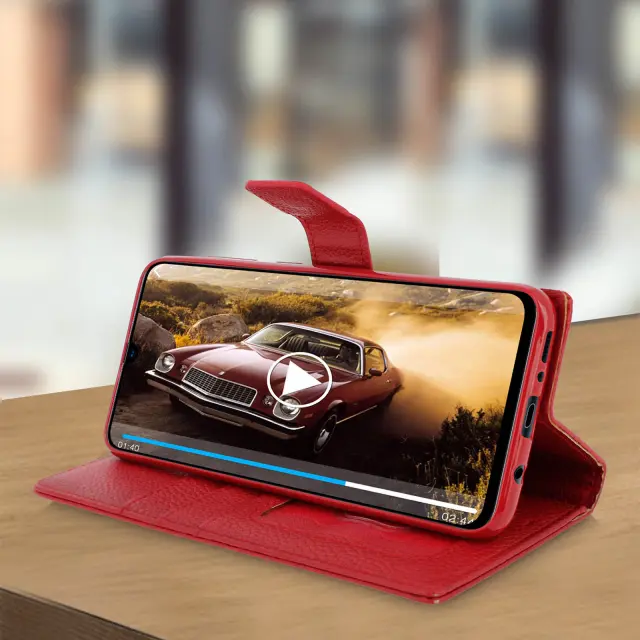 Folio Case Držalo za kartice in stojalo za video, zrnat ucinek - rdeca str. Samsung Galaxy A70