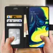 Folio etui posebej zasnovan za Samsung Galaxy A80. Prevleka v videzu usnja in šivani zaključki. Več predelkov za kartice v podlogi z zavihkom. Funkcija vodoravnega stojala za udobno uživanje v videoposnetkih/fotografijah.