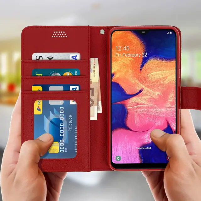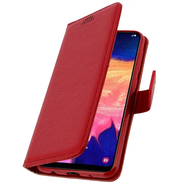 Folio Case Držalo za kartice in stojalo za video, zrnat ucinek - rdeca str. Samsung Galaxy A10