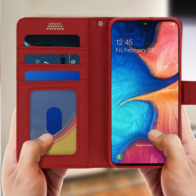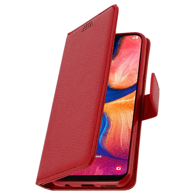 Folio Case Držalo za kartice in stojalo za video, zrnat ucinek - rdeca str. Samsung Galaxy A20e