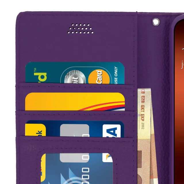 Folio Case Držalo za kartice in stojalo za video, zrnat ucinek - vijolicna str. Samsung Galaxy A70