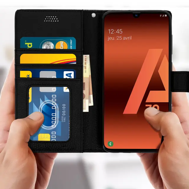 Folio Case Držalo za kartice in stojalo za video, zrnat ucinek - crna str. Samsung Galaxy A70