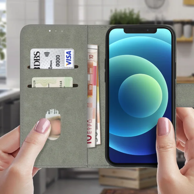 Zadnji ovitek izdelan posebej za Apple iPhone 12/12 Pro. Popolna zaščita, ki učinkovito ščiti vsakodnevne udarce in praske. V podlogo z zavihkom so integrirani predelki za shranjevanje vaših kartic. Vodoravna podporna funkcija za udobno uživanje v fotografijah in videoposnetkih.