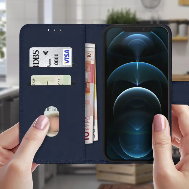 Folio Case iPhone 12 Pro Max z držalom za kartico - modra