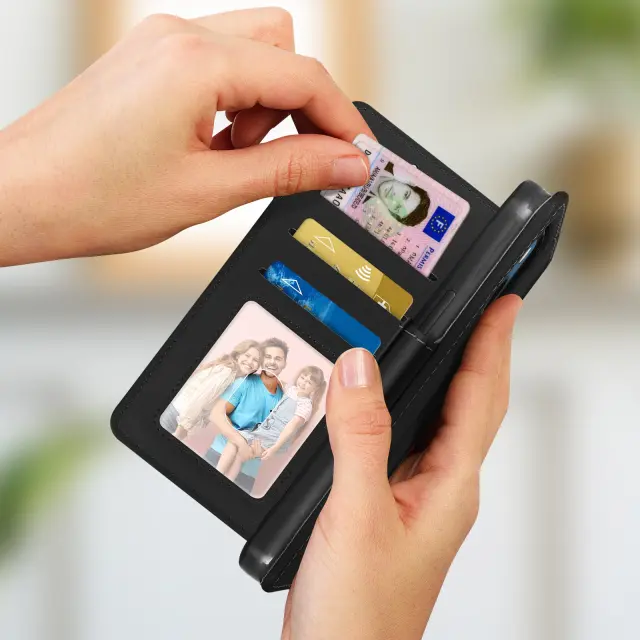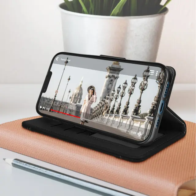 Folio Case, iz kolekcije Vito, posebej oblikovan za Apple iPhone 13 Mini. Izkoristite integrirane predelke v podlogi zavihka in na sprednji strani etuija, da vstavite svoje kartice. Horizontalna podporna funkcija za udobno gledanje vaših fotografij in videoposnetkov. Popolnoma ščiti vaš pametni telefon pred vsakodnevnimi udarci in praskami.