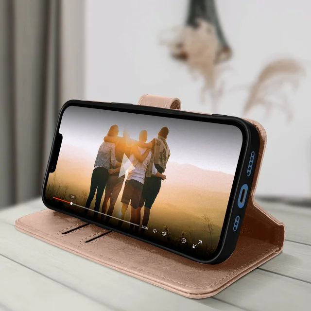 Folio Case z držalom za kartice, posebej zasnovan za Apple iPhone 13 - roza zlato. Etui z magnetnim zavihkom za zaščito vašega pametnega telefona. Denarnica, integrirana v podlogo zavihka. Funkcija vodoravnega stojala za popolno uživanje v pametnem telefonu.