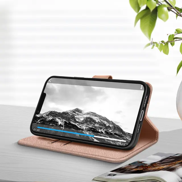 Folio etui za iPhone 14 Plus, serija Chesterfield, za zašcito vašega mobilnega telefona pred nepricakovanimi dogodki. Funkcija shranjevanja kartic in video stojala v stranskem žepu. Magnetni jezicek. Dostopne funkcije.