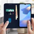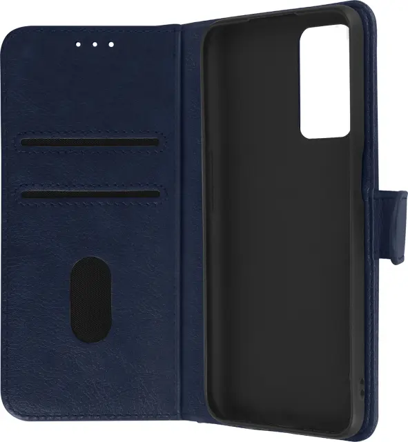 Folio Case z držalom za kartico, posebej zasnovan za Oppo A16 in A16s - temno modra. Etui z magnetnim zavihkom za zaščito vašega pametnega telefona. Denarnica, integrirana v podlogo zavihka. Vodoravna podporna funkcija za udobno gledanje videoposnetkov.