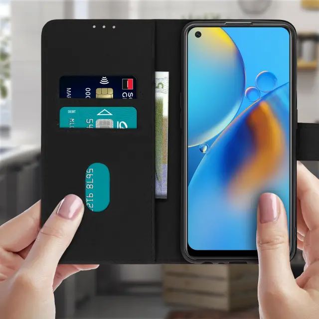 Folio etui za Oppo A74, serija Chesterfield, za zašcito vašega mobilnega telefona pred nepricakovanimi dogodki. Funkcija shranjevanja kartic in video stojala v stranskem žepu. Magnetni jezicek. Dostopne funkcije.
