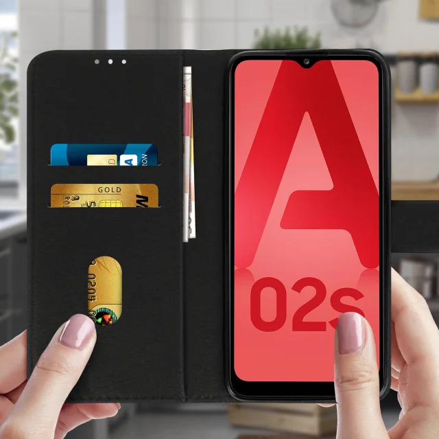 Folio Case Samsung Galaxy A02s z držalom za kartico - Crna