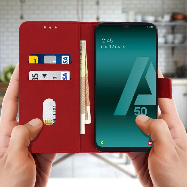 Folio Case Samsung Galaxy A50 / A30s z držalom za kartico - rdeca