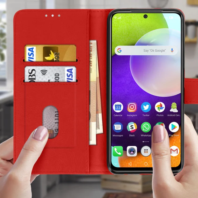 Folio Case Samsung Galaxy A52 z držalom za kartico - rdeca