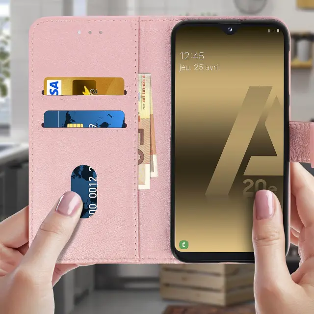 Folio Case Samsung Galaxy A20e z držalom za kartico - roza guba