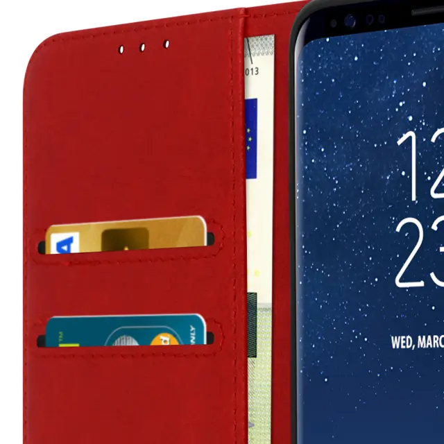 Preklopna torbica posebej zasnovana za Samsung Galaxy S8. Učinkovito ščiti vaš pametni telefon pred vsakodnevnimi udarci in praskami. Znotraj zavihka so vgrajeni namenski predelki za vaše kartice. Horizontalna podporna funkcija za udobno gledanje vaših fotografij in videoposnetkov.
