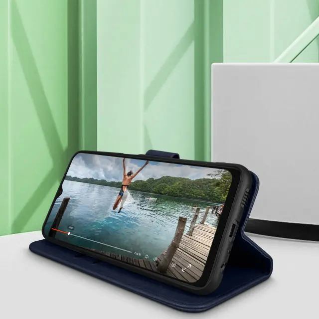 Folio etui za Samsung Galaxy A13 4G, serija Chesterfield, za zašcito vašega mobilnega telefona pred nepricakovanimi dogodki. Funkcija shranjevanja kartic in video stojala v stranskem žepu. Magnetni jezicek. Dostopne funkcije.