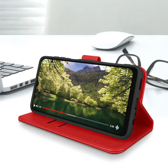 Folio etui za Samsung Galaxy A13 5G / A04s, serija Chesterfield, za zašcito vašega mobilnega telefona pred nepricakovanimi dogodki. Funkcija shranjevanja kartic in video stojala v stranskem žepu. Magnetni jezicek. Dostopne funkcije.