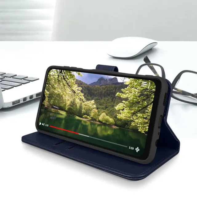 Folio etui za Samsung Galaxy A13 5G / A04s, serija Chesterfield, za zašcito vašega mobilnega telefona pred nepricakovanimi dogodki. Funkcija shranjevanja kartic in video stojala v stranskem žepu. Magnetni jezicek. Dostopne funkcije.
