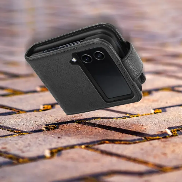 Folio etui za Samsung Galaxy Z Flip 3, serija Chesterfield, za zašcito vašega mobilnega telefona pred nepricakovanimi dogodki. Funkcija shranjevanja kartic in video stojala v stranskem žepu. Magnetni jezicek. Dostopne funkcije.