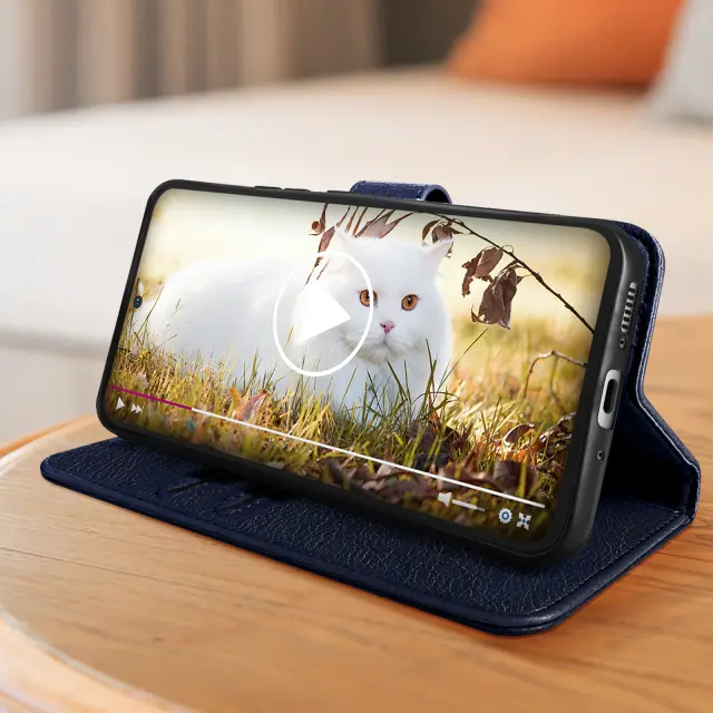 Folio etui za Samsung Galaxy A54 5G, serija Chesterfield, za zašcito vašega mobilnega telefona pred nepricakovanimi dogodki. Funkcija shranjevanja kartic in video stojala v stranskem žepu. Magnetni jezicek. Dostopne funkcije.