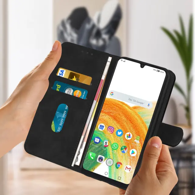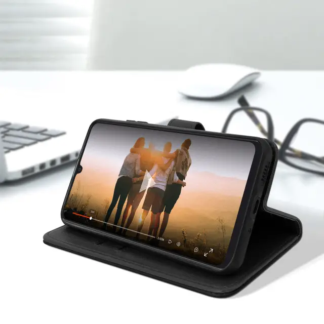 Folio etui za Samsung Galaxy A33 5G, serija Chesterfield, za zašcito vašega mobilnega telefona pred nepricakovanimi dogodki. Funkcija shranjevanja kartic in video stojala v stranskem žepu. Magnetni jezicek. Dostopne funkcije.
