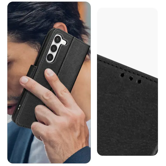 Iz serije Chesterfield, zasnovan za Samsung Galaxy S23. Zahvaljujoč učinkoviti zaščiti pred udarci in praskami opravite svoj vsakdan brez skrbi. Opremljen s prevleko iz umetnega usnja za uspešen ponovni videz vašega pametnega telefona. Magnetni jeziček za zaprtje ohišja za večjo varnost.