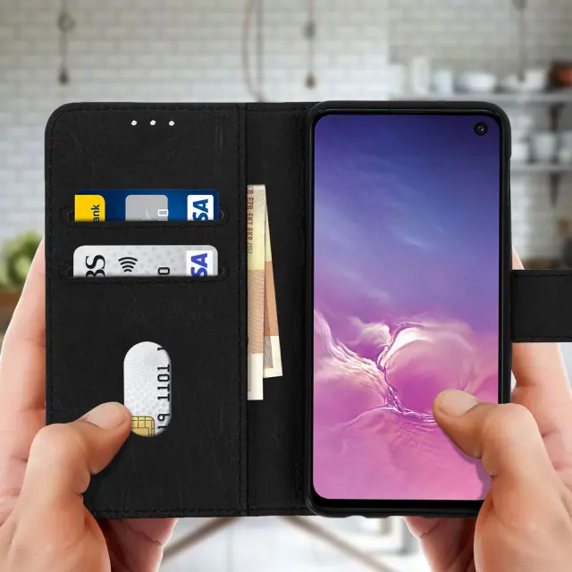 Folio Case Samsung Galaxy S10e z držalom za kartico - Crna