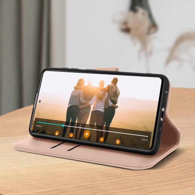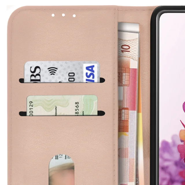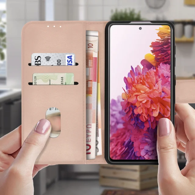 Zadnji ovitek izdelan posebej za Samsung Galaxy S20 FE. Popolna zaščita, ki učinkovito ščiti vsakodnevne udarce in praske. V podlogo z zavihkom so integrirani predelki za shranjevanje vaših kartic. Vodoravna podporna funkcija za udobno uživanje v fotografijah in videoposnetkih.