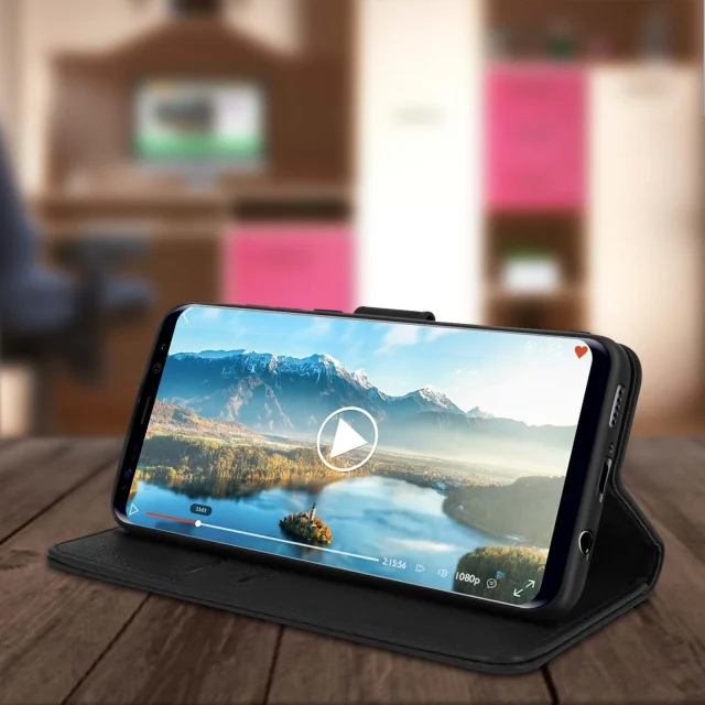 Preklopna torbica posebej zasnovana za Samsung Galaxy S8. Učinkovito ščiti vaš pametni telefon pred vsakodnevnimi udarci in praskami. Znotraj zavihka so vgrajeni namenski predelki za vaše kartice. Horizontalna podporna funkcija za udobno gledanje vaših fotografij in videoposnetkov.