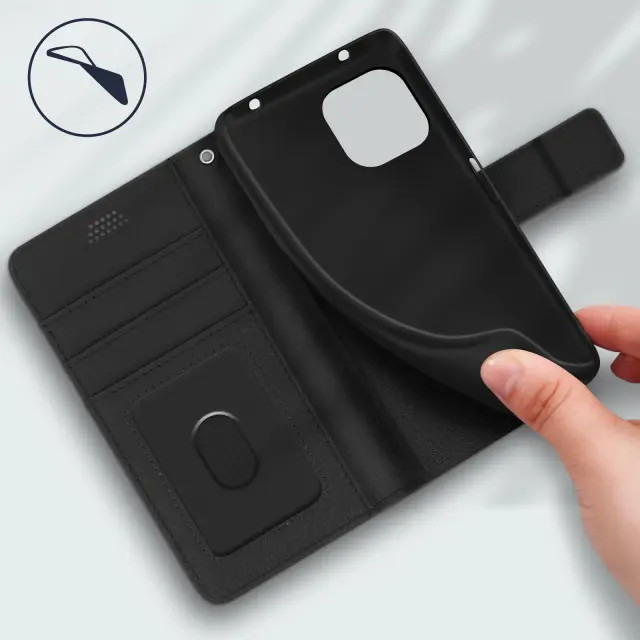 Folio Case Xiaomi Mi 11 Lite 4G, 5G in Xiaomi 11 Lite 5G NE, zapestni trak in zašcita za kamero, pocen videz - crna