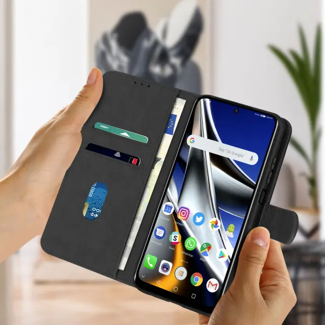 Folio Case Xiaomi Poco X4 Pro 5G z držalom za kartico - Crna