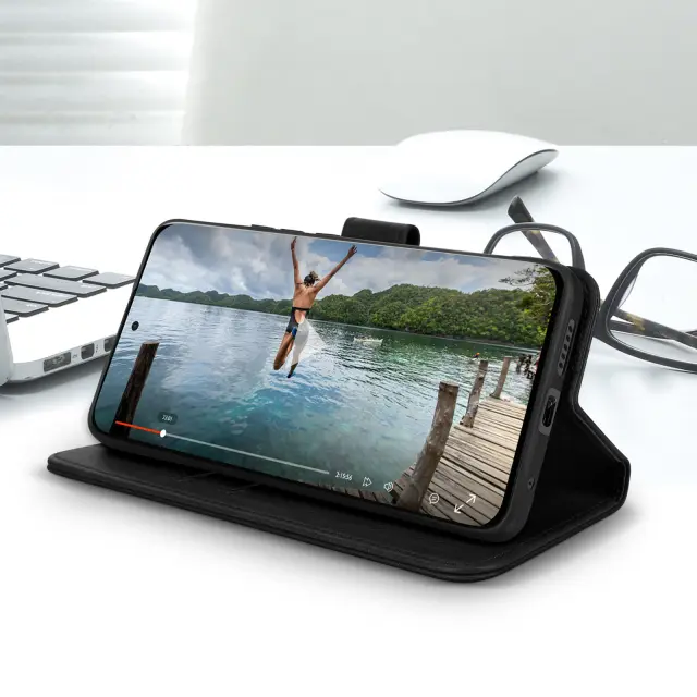 Folio etui za Xiaomi Redmi Note 11 Pro 5G, serija Chesterfield, za zašcito vašega mobilnega telefona pred nepricakovanimi dogodki. Funkcija shranjevanja kartic in video stojala v stranskem žepu. Magnetni jezicek. Dostopne funkcije.