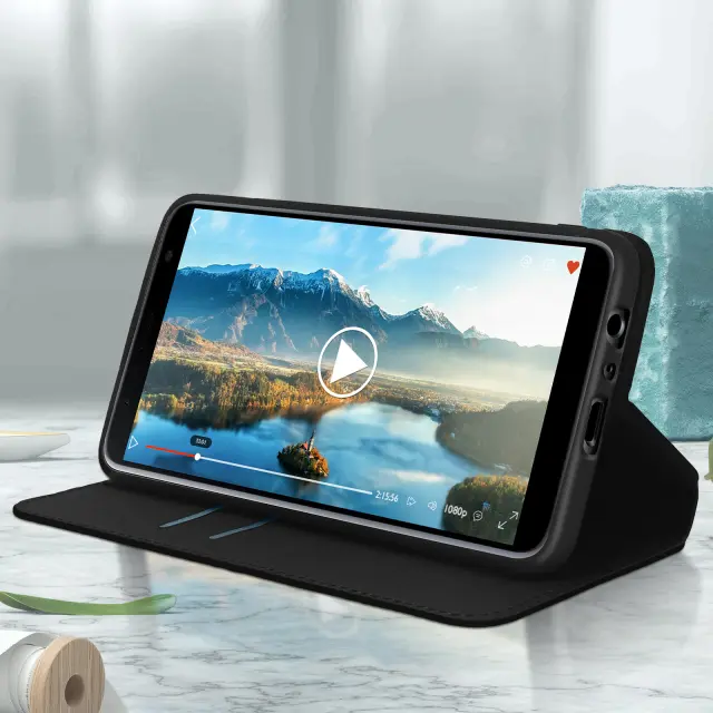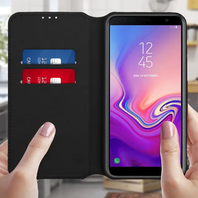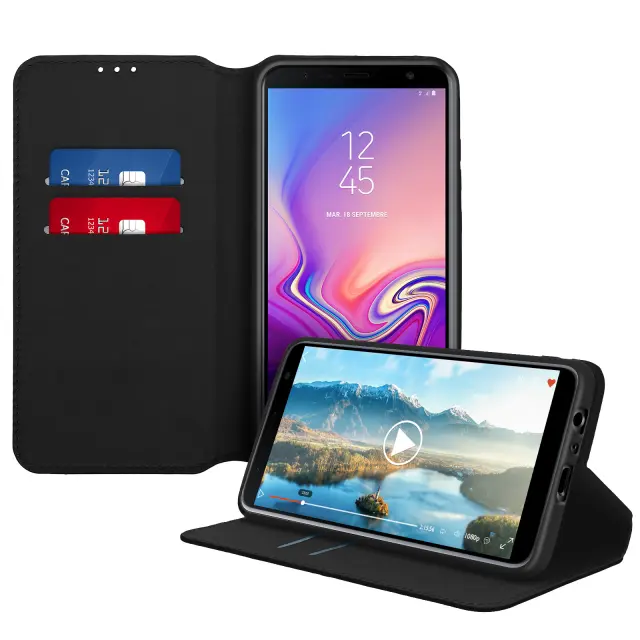 Folio Cover Držalo za kartice in stojalo za video - crna str. Samsung Galaxy J6 Plus