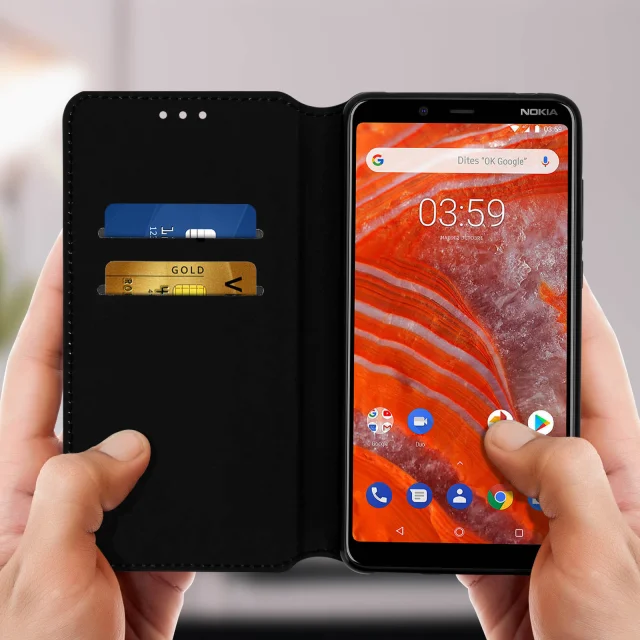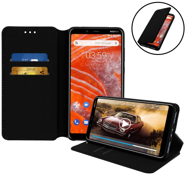 Folio Cover Držalo za kartice in stojalo za video - crna str. Nokia 3.1 Plus