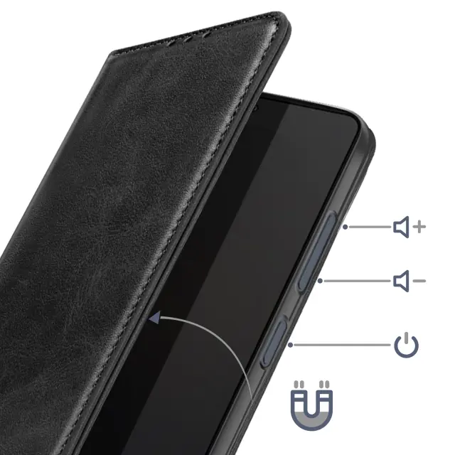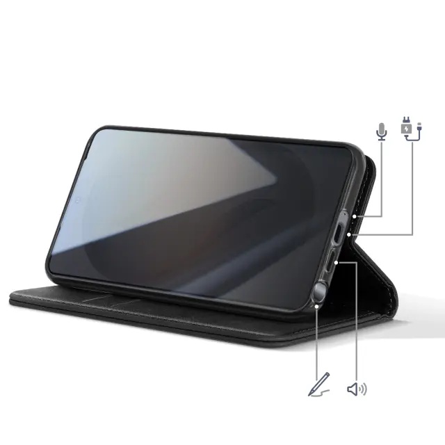 Folio etui za Galaxy S26 Ultra s popolno zaščito in funkcijo denarnice. Varno magnetno zapiranje, ki preprečuje vsakodnevno nenamerno odpiranje. Učinek eko usnja z notranjo lupino iz silikonskega gela, odporno na udarce in praske. 2 reži za kartice in stranski predalček za vstopnice za vse vaše najnujnejše stvari.