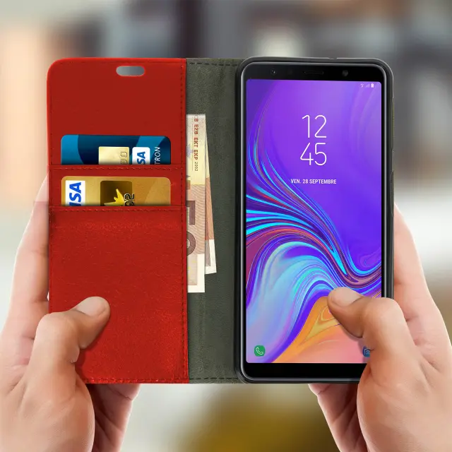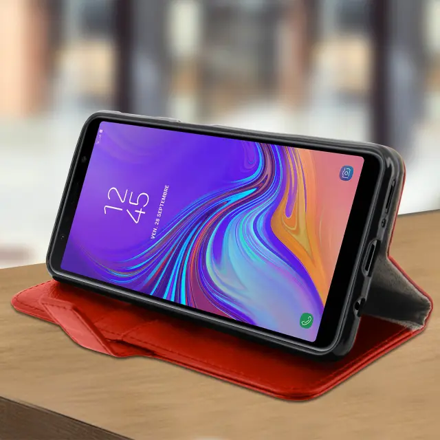 Folio etui za denarnico in stojalo za video, zrnat ucinek - rdeca str. Samsung Galaxy A7 2018