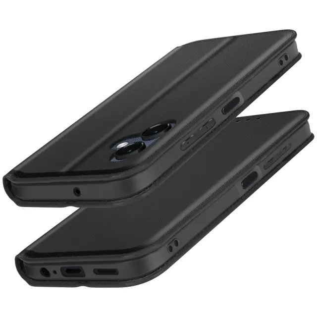 Pokriva celoten pametni telefon in zagotavlja popolno zaščito pred udarci in praskami. Magnetni zaklop zagotavlja hitro in varno zapiranje pokrova ter ščiti zaslon.. Vgrajena funkcija nosilca kartic za shranjevanje pomembnih kartic (kreditnih, osebnih). Funkcija zložljivega držala za videoposnetke, s katero lahko pametni telefon postavite v krajinski način za udobno gledanje.