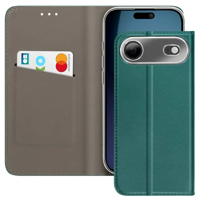 Folio etui za iPhone 17 Air z držalom za kartice in funkcijo stojala za video, Temno zelena