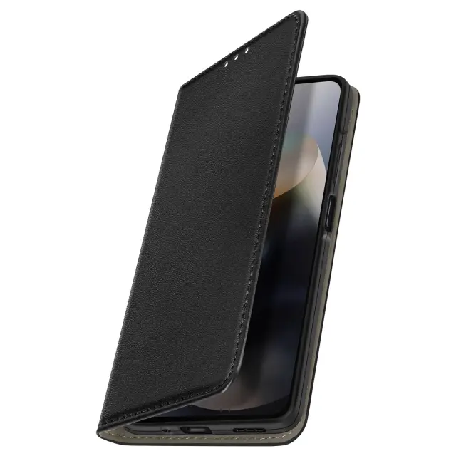 Prefinjeno usnjeno ohišje z elegantnimi šivi, združljivo z Motorola Moto G56. Diskretna integrirana reža za bančno ali osebno izkaznico. Funkcija video podpore je idealna za filme, serije in prostoročne klice. Prilagodljiva notranja lupina, ki absorbira udarce, z natančnimi izrezi za priključke in kamero.