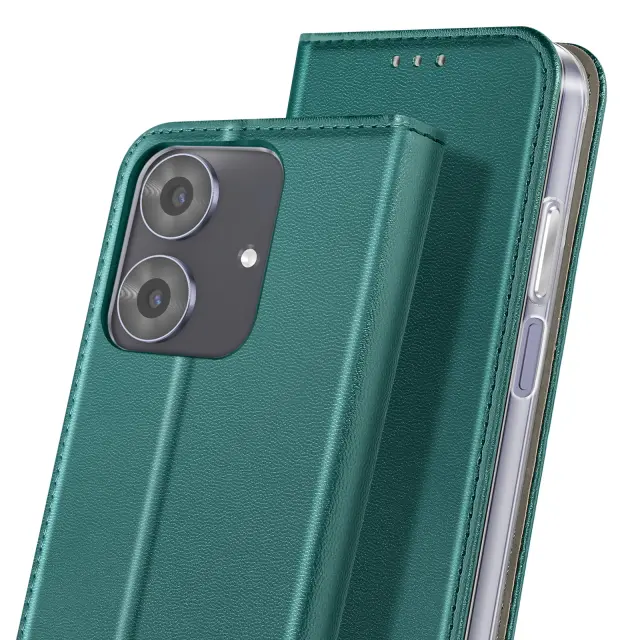 Prefinjen usnjeni ovitek z elegantnimi šivi, združljiv z Realme Note 60. Diskretna integrirana reža za bančno ali osebno izkaznico. Funkcija video podpore je idealna za filme, serije in prostoročne klice. Prilagodljiva notranja lupina, ki absorbira udarce, z natančnimi izrezi za priključke in kamero.