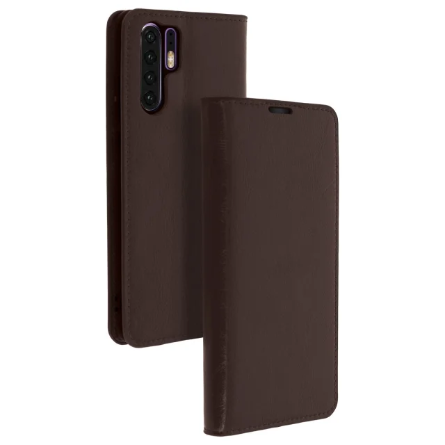 Folio torbica denarnica s stojalom za video iz pravega usnja - temno rjava str. Huawei P30 Pro
