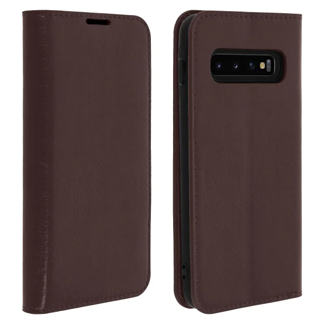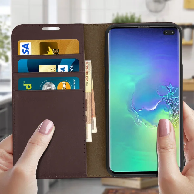 Folio torbica denarnica s stojalom za video iz pravega usnja - temno rjava str. Samsung Galaxy S10 Plus