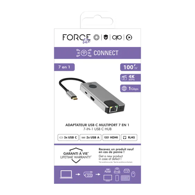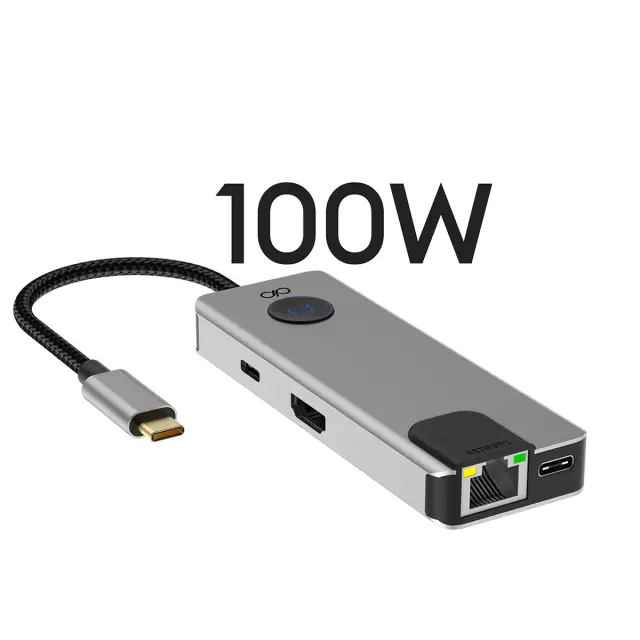 Razdelilnik USB-C 7 v 1 spremeni en sam priključek v celovito rešitev z vmesniki HDMI, USB-A, USB-C, ethernetom in hitrim polnjenjem, idealno za sodobne prenosnike in naprave USB-C.. Tehnologija Power Delivery do 100 W za hitro, stabilno in varno polnjenje združljivih naprav, obenem pa ohranja zmogljivost prenosa in prikaza. Izhod HDMI visoke ločljivosti za nemoten prikaz do 4K pri 60 Hz, idealen za večopravilnost, profesionalne predstavitve in večpredstavnostno zabavo. Gigabitna vrata RJ45 Ethernet, ki zagotavljajo stabilno internetno povezavo do 1 Gb/s, v kombinaciji z robustnim aluminijastim ohišjem in pletenim kablom, odpornim na obrabo, za dolgotrajno mobilno uporabo..