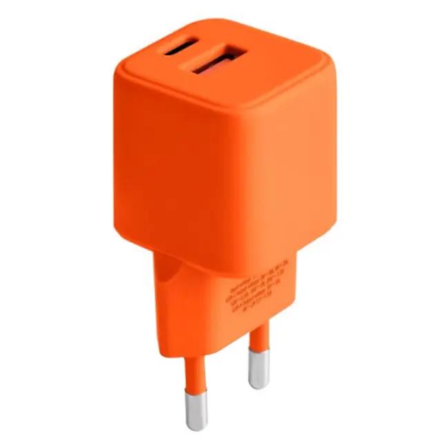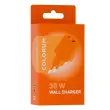Oranžni stenski polnilnik Colorum ima 30W PD priključek USB-C in 18W QC priključek USB-A za polnjenje pametnih telefonov, tabličnih računalnikov in prenosnikov.. Čip GaN optimizira energetsko učinkovitost in omejuje toploto, ki nastaja med polnjenjem. Ognjevarno polikarbonatno ohišje UL94 V0 je odporno na udarce in preprečuje širjenje plamena v primeru pregrevanja.. Združljivost s standardi PPS in QC 3.0 razširja možnosti polnjenja različnih naprav.
