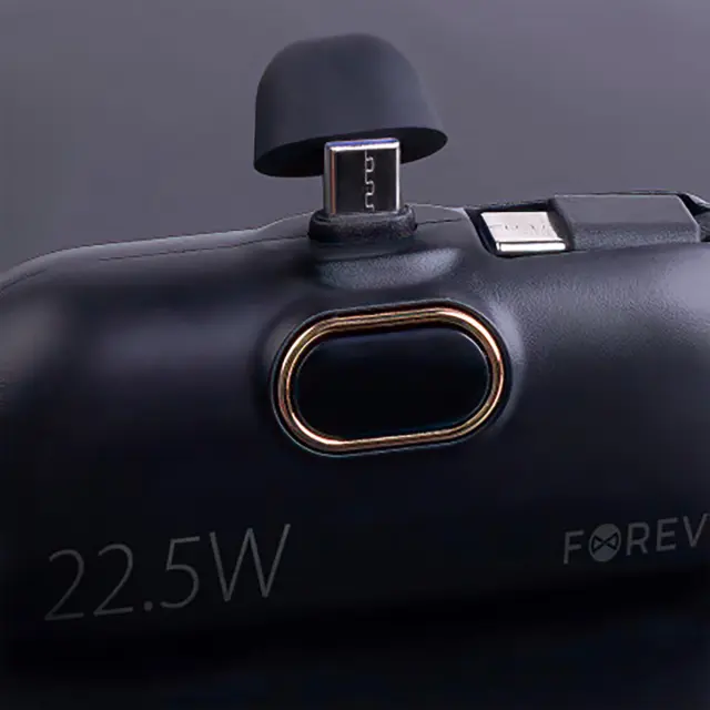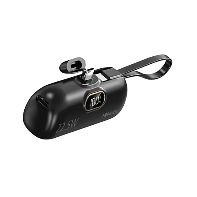 Forever, Napajalna banka 5000 mAh USB-C z vgrajenim ultra kompaktnim kablom USB-C, Črna